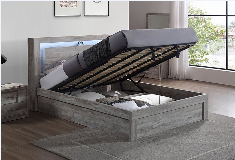 Bed Head Storage, Gas Lift With Storage, Led Touch Bed Head Light, Mdf Timber, Usb Charger