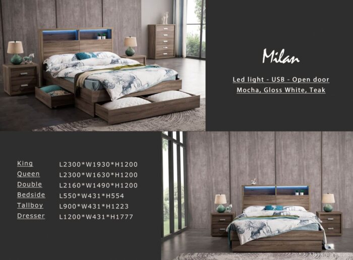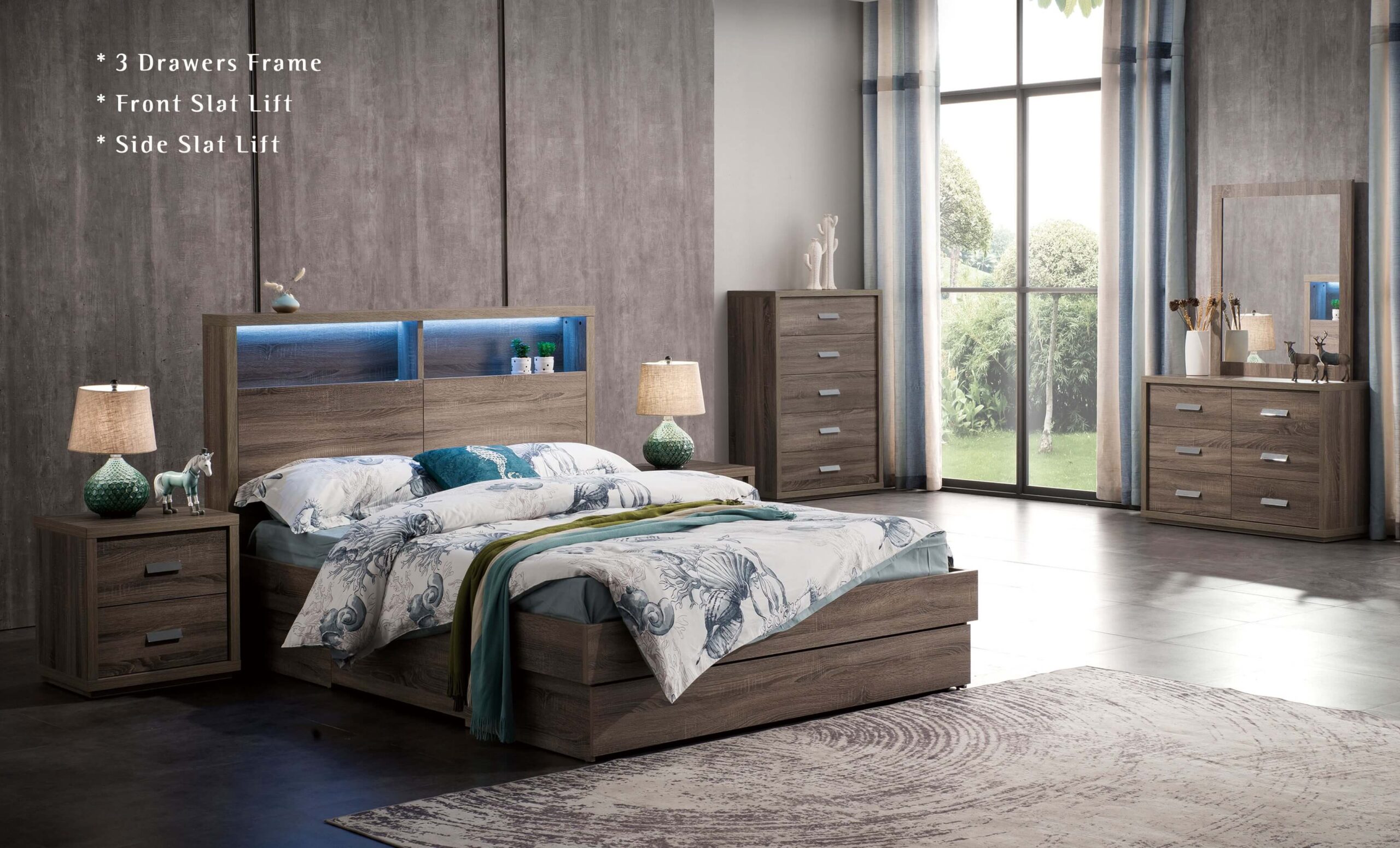 Bed Head Storage, Gas Lift With Storage, Led Touch Bed Head Light, Mdf Timber, Usb Charger